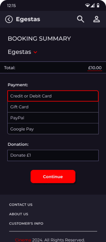 Добавить различные варианты оплаты, включая наличные платежи в кинотеатре